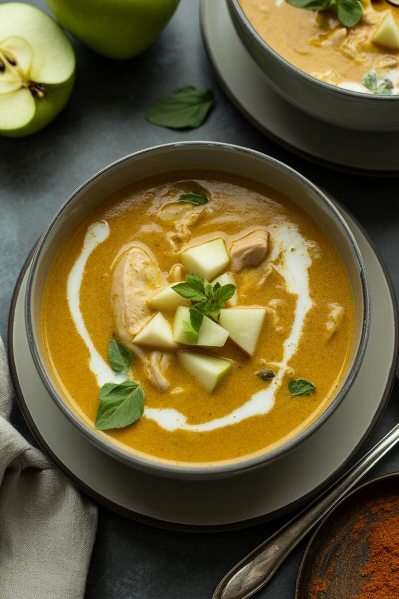 Think lobster bisque, but with budget-friendly chicken. The broth is blended until perfectly smooth, then finished with a touch of cream and a splash of brandy. A garnish of finely diced chicken adds texture. It feels restaurant-worthy without the price tag.