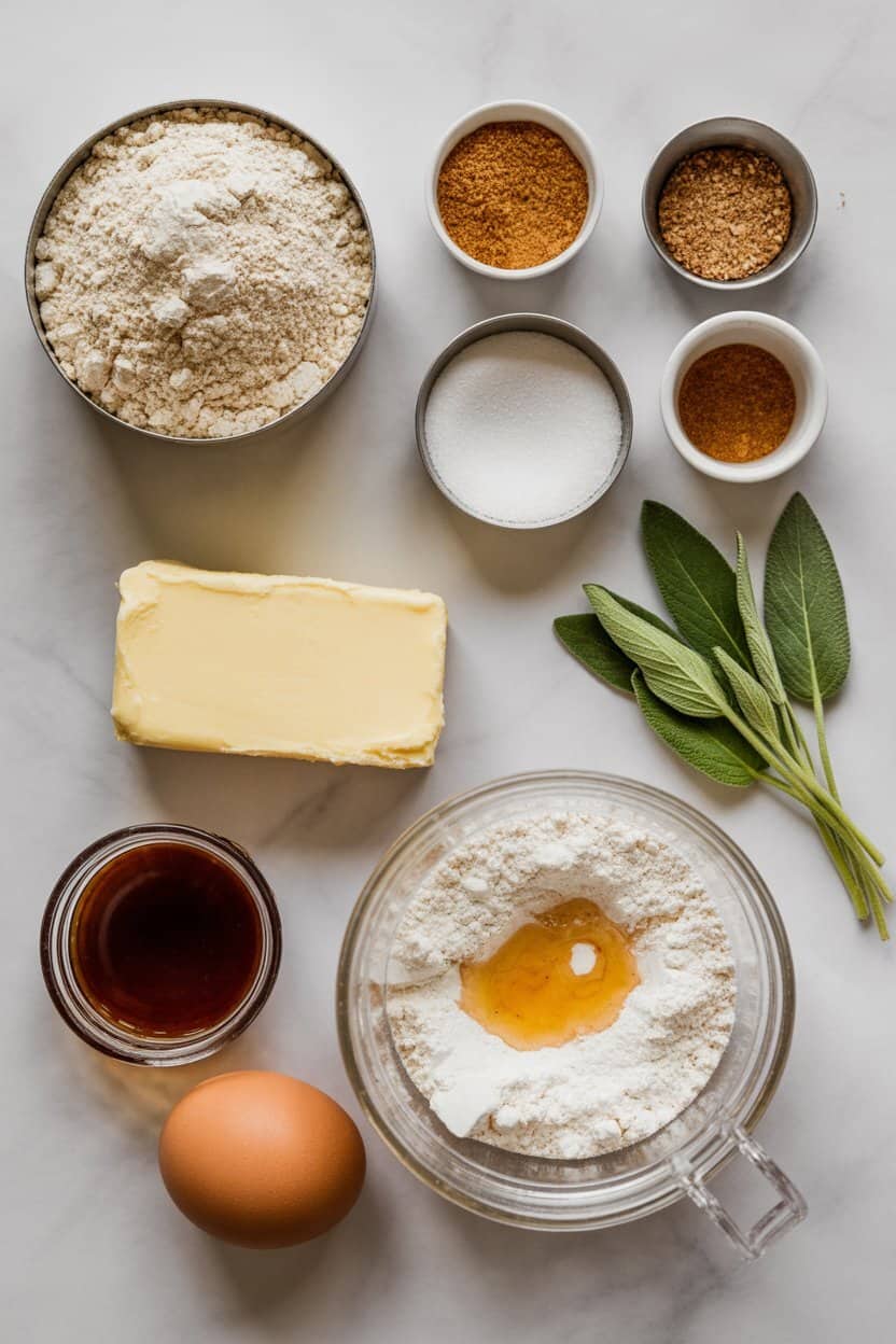 Begin by whisking together the flour, ground ginger, cinnamon, baking soda, salt, nutmeg, and sage. Set this dry mixture aside. In a separate bowl, cream the softened butter with brown sugar until fluffy. Beat in the molasses and egg. Gradually add the flour mixture, mixing just until a dough forms.