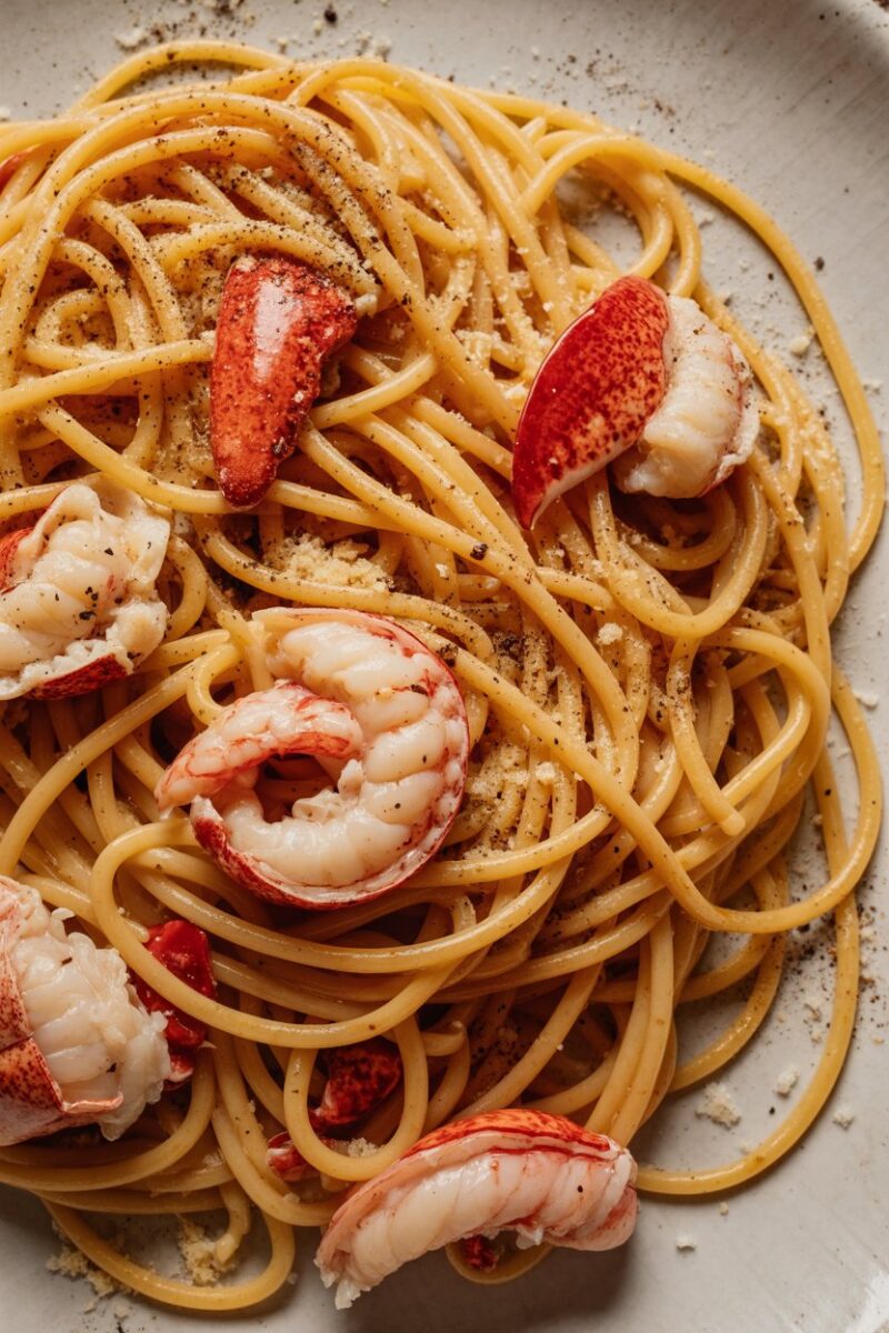An Emulsified sauce of pasta water, Pecorino Romano, and freshly ground pepper coats each strand. Butter-poached lobster adds luxury without much extra time. The contrast of sharp cheese and sweet shellfish is irresistible.