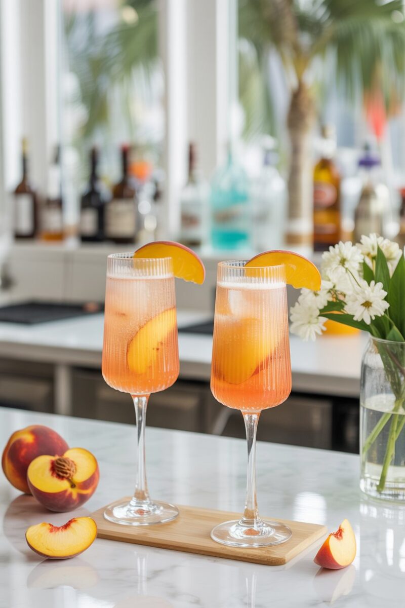 This alcohol-free riff uses puréed ripe peaches topped with chilled sparkling water or non-alcoholic prosecco. A squeeze of lemon juice sharpens the sweetness. Serve in champagne flutes so the drink feels special. It complements both rich and light dishes alike.