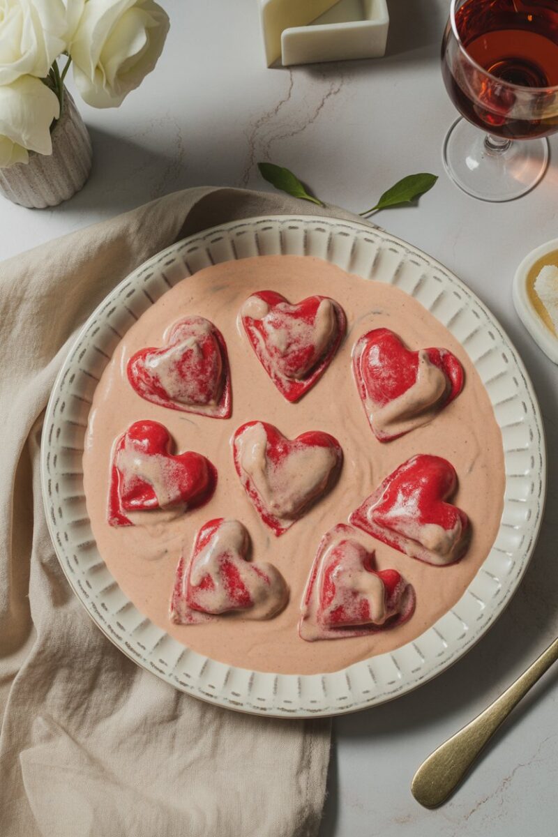 28. Heart-Shaped Ravioli with Vodka Sauce