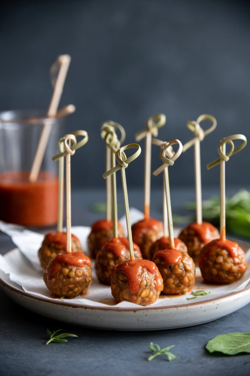 Brown lentils, oats, and Italian herbs bind into tender meatballs that bake instead of fry. Slide two or three onto short skewers for easy grabbing. Offer extra marinara for dipping or drizzling.